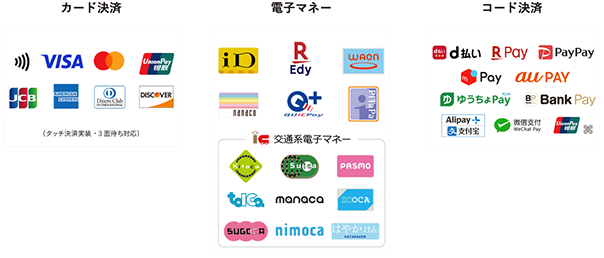 クレジットカード、電子マネー、コード決済各種サービスを取り扱っております。