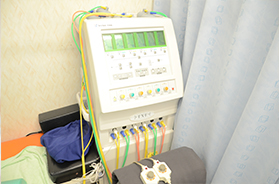 | 筋緊張(コリ、ハリ感)、痛みに対して高い効果が期待出来る中周波治療器(電気治療)です。 従来の低周波治療器よりも深部への刺激が可能となり治療効果が格段にあがりました。 |